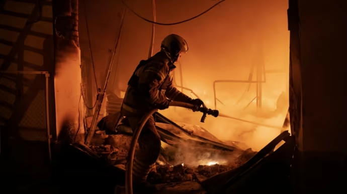 A fire broke out in a hotel and restaurant complex in Kyiv Oblast’s Brovary district due to debris from a downed Russian UAV, the State Emergency Service reported. Two buildings caught fire, but no casualties have been reported.