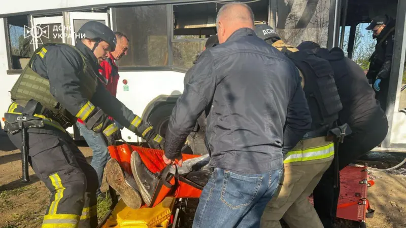 On the morning of April 23, a Russian FPV drone struck a bus carrying workers from a mining enterprise in the city of Marganets, Dnipropetrovsk Oblast. Local authorities report at least nine people killed and over 42 injured, most of them women with serious injuries.