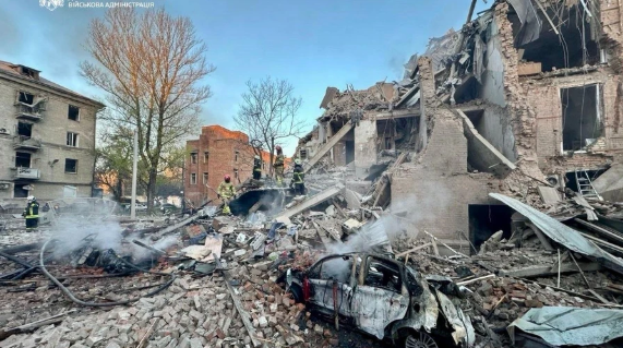 The daytime strike hit the same neighborhood targeted overnight on April 24–25, damaging a residential apartment block. Seven people were initially reported injured.