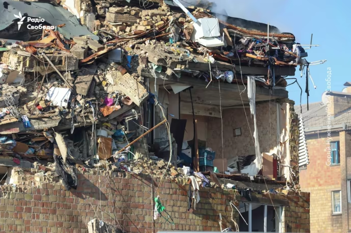 Donetsk Oblast Governor Vadym Filashkin said the attack damaged or destroyed 35 apartment buildings, two houses, six cars, an educational institution, and eight infrastructure facilities.