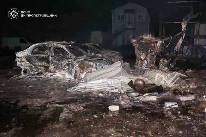 On the night of August 6–7, a Russian strike on the city of Dnipro left four people injured and caused extensive damage across the region. Fires broke out, and both homes and vehicles were destroyed or damaged in the attack, which also affected other areas of Dnipropetrovsk Oblast.