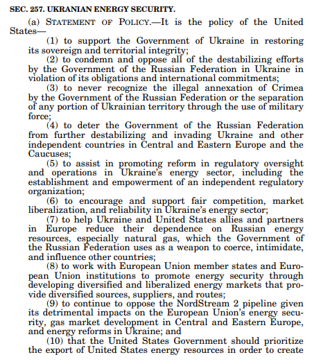 Despite pressure from proposed peace plans that would compel Ukraine to withdraw from the uncaptured parts of the Donbas area, meeting Russian President Putin demands, the United States remains legally barred from endorsing or facilitating any agreement involving Ukrainian territorial concessions to Russia, thanks to the Countering America's Adversaries Through Sanctions Act (CAATSA), Public Law 115-44, signed into law in 2017. Section 257 of CAATSA explicitly declares it U.S. policy to "work with European Union Member States and European institutions to promote energy security through developing diversified and liberalized energy markets," but more critically, it codifies a firm stance against recognizing Russian violations of Ukraine's sovereignty, including any forced territorial changes—making such deals not just politically impossible but legally void under federal law.
