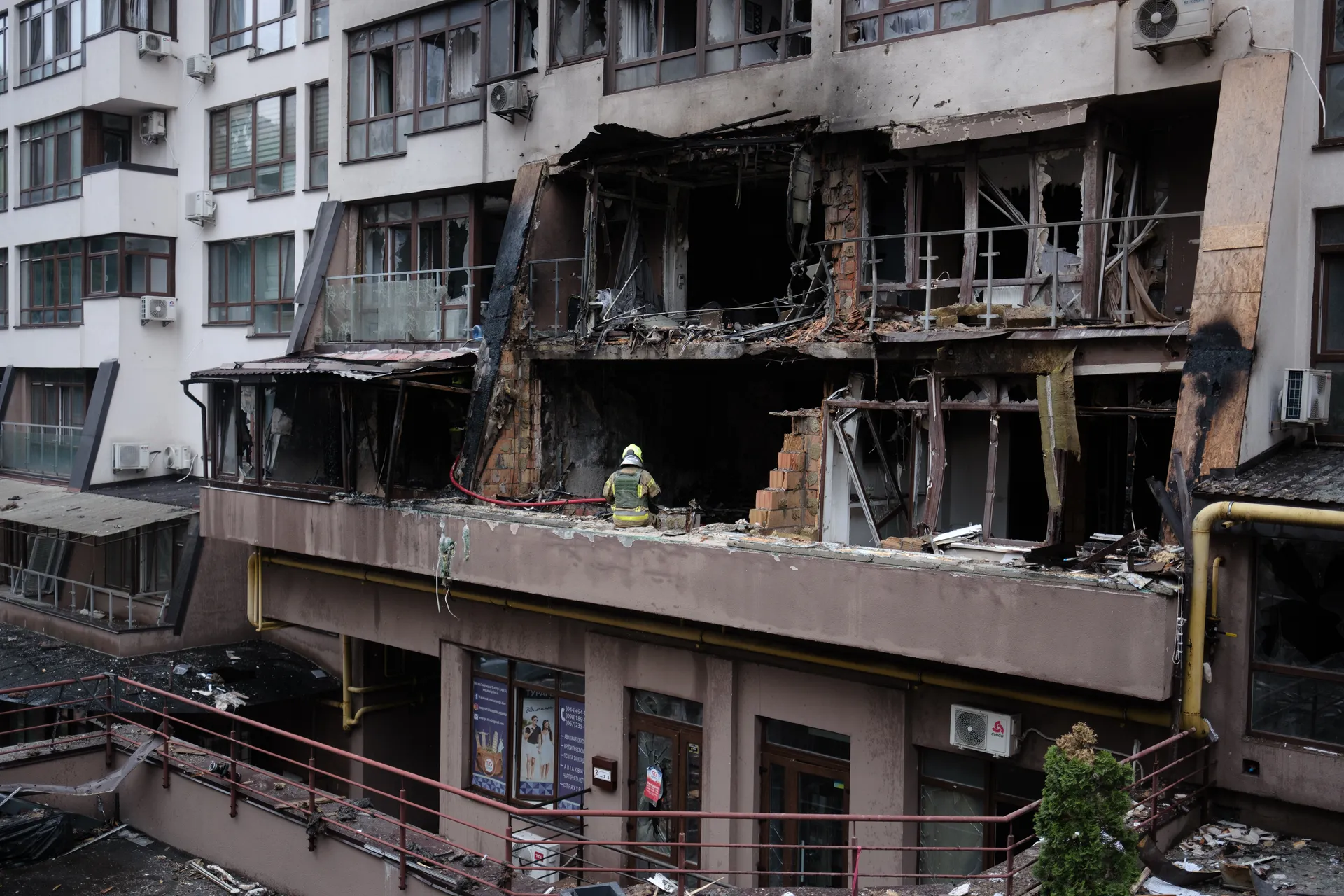 Smoke filled Kyiv’s Lukianivska metro station as residents took shelter underground. Witnesses described the chaos and damage. A woman living in an apartment building near the station said she sought refuge in a nearby parking lot and described hearing blasts as parts of her building were hit. Her third-floor apartment suffered heavy damage, with windows blown out and radiators destroyed. Thanks to the rapid response of firefighters, she said, the fire was extinguished before it could spread further.