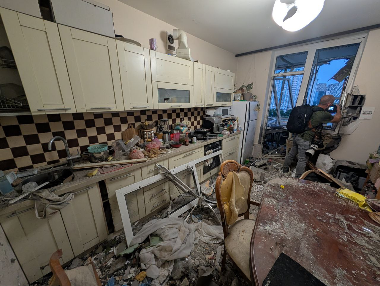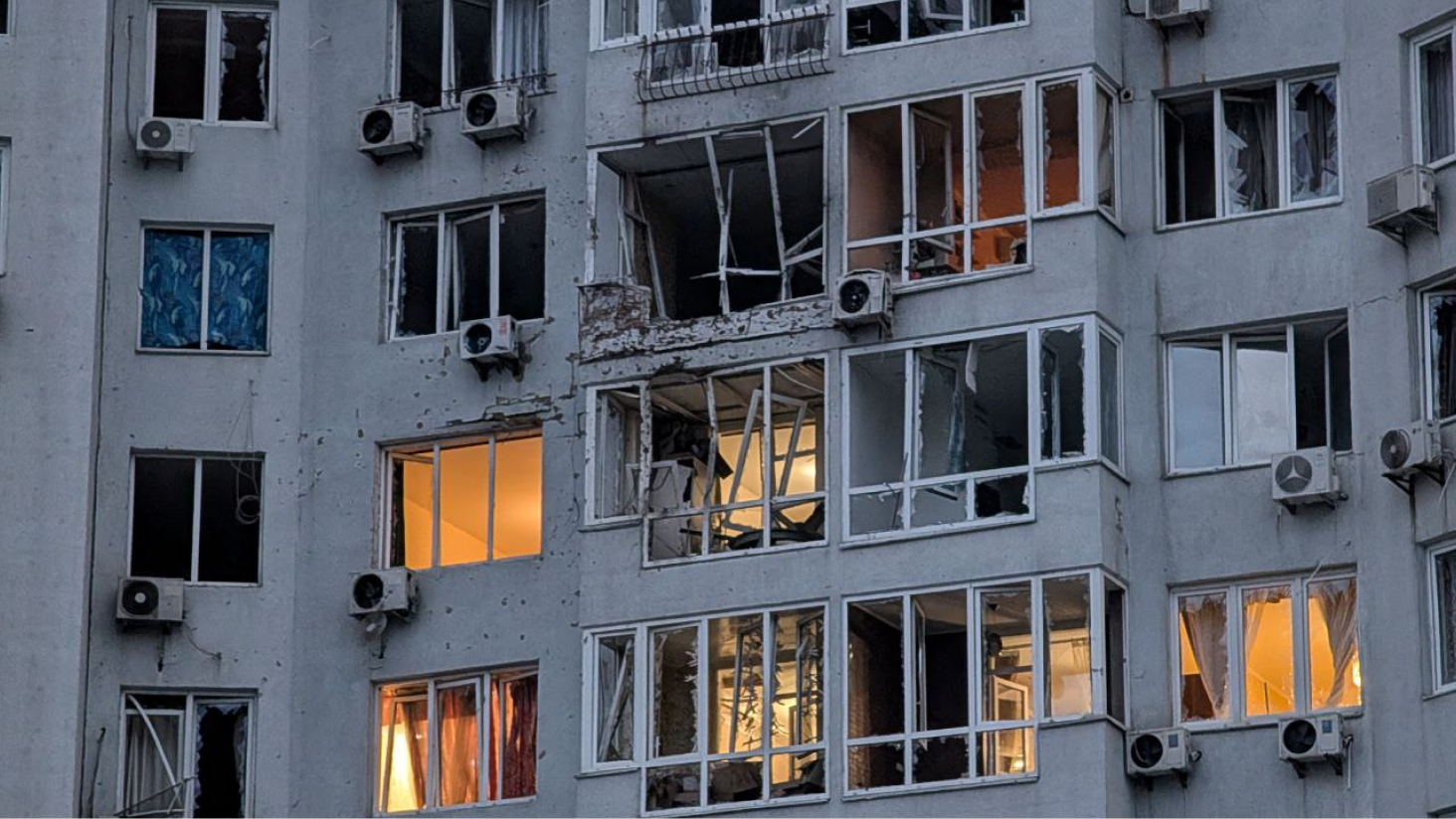 A high-rise apartment building in Kyiv’s Darnytskyi district suffered significant damage. The blast wave shattered windows from the 6th to the 11th floors, and four people were hospitalized—one of them in critical condition, said Tymur Tkachenko, head of the Kyiv City Military Administration.