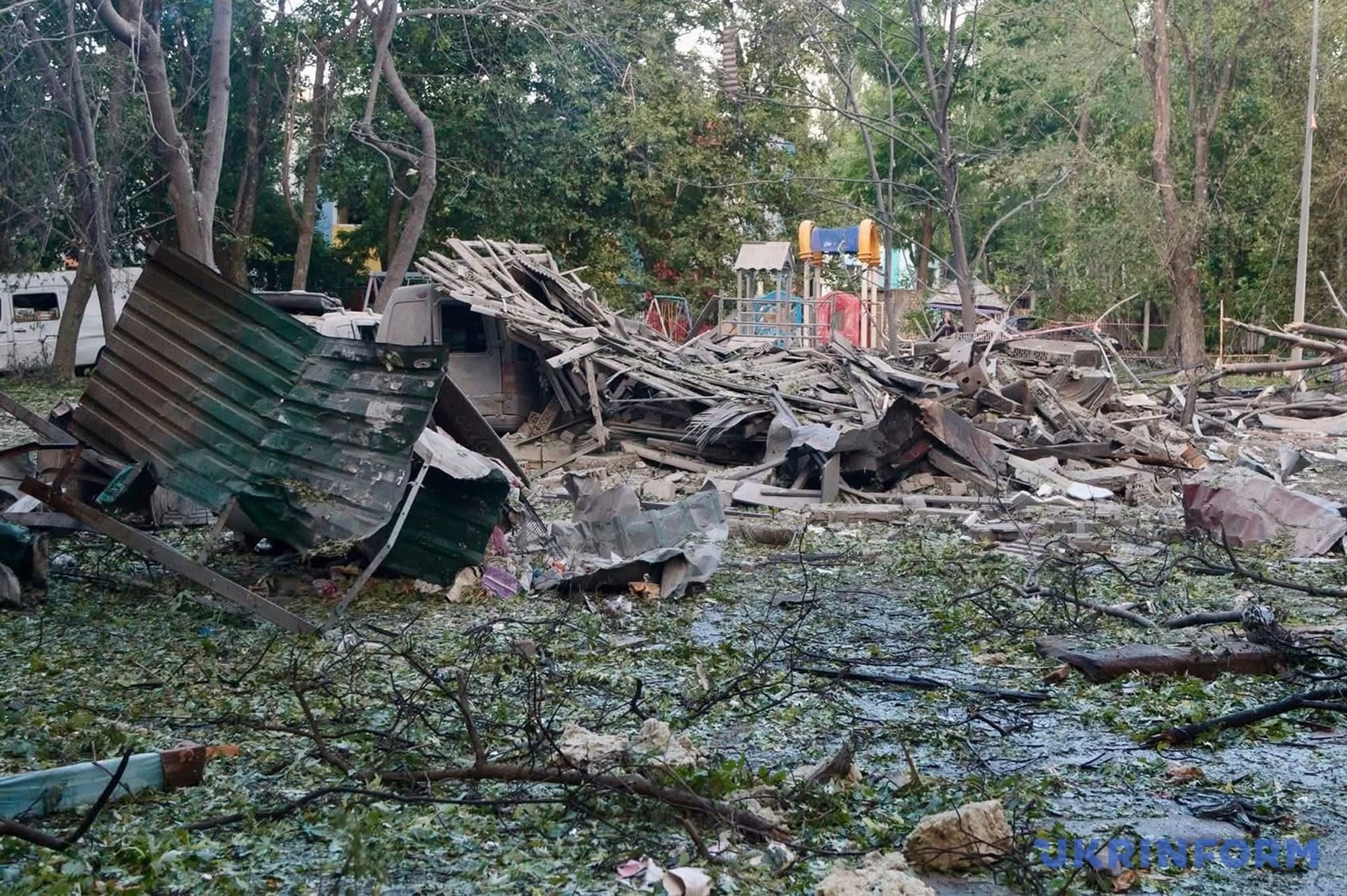 A kindergarten in Darnytskyi and a dormitory at the Kyiv Aviation Institute were also damaged in the strike. Drones hit the 10th floor of the institute and shattered windows on multiple other floors. The upper floors of residential buildings in Shevchenkivskyi and Solomianskyi were damaged as well.