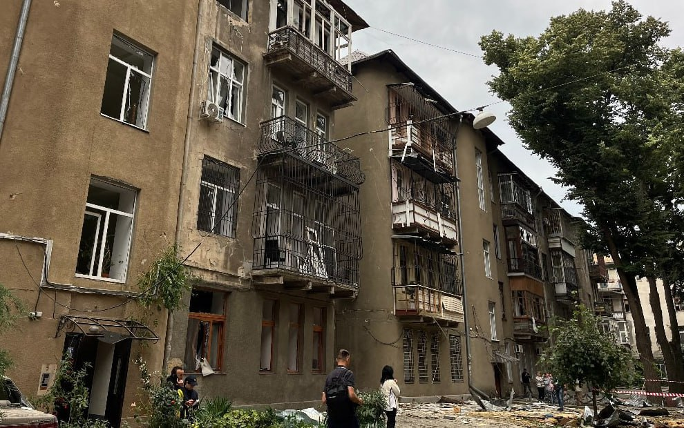 The strikes began around 1 a.m. and hit over 10 targets, including seven residential buildings. A 23-story building caught fire between its 18th and 20th floors, prompting the evacuation of over 600 people.