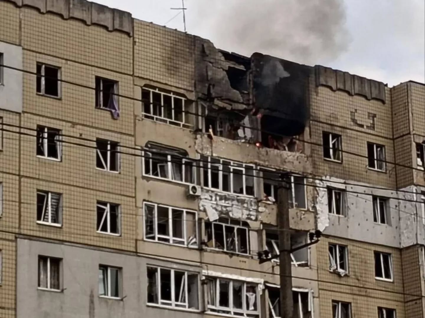 In the central-eastern city of Dnipro, a Russian drone directly hit a 14-storey apartment building in the morning, causing fires on the upper floors and damaging walls, balconies, and windows. The strike injured at least 12–13 people, including several children. Additional apartment buildings and kindergartens in the city sustained damage from the attack or falling debris. Mayor Boris Filatov confirmed the impact, noting that rescue operations were underway.