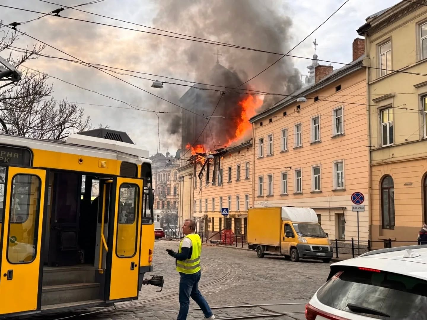 In the western city of Lviv, Russian drones struck the historic city center in the afternoon, hitting a residential building and damaging a UNESCO World Heritage site near a church and monastery. Fires broke out in one of the biggest residential districts and central areas after multiple impacts. At least 22 people were injured (the number of injured is currently growing), including residents of the affected apartment buildings. Local authorities reported that emergency services were working at the scenes, with debris from downed drones also falling in city streets.