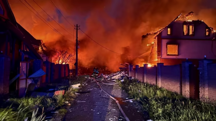 Russia’s large-scale aerial assault on May 25 killed three people and injured 10 others, including two children, in Kyiv Oblast, according to regional Governor Mykola Kalashnyk.