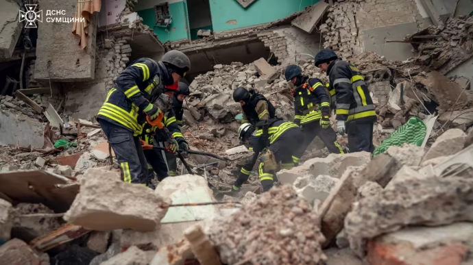 Eleven people dead including a child, two more might be trapped under rubble in Hlukhiv, Sumy oblast after Russian attack