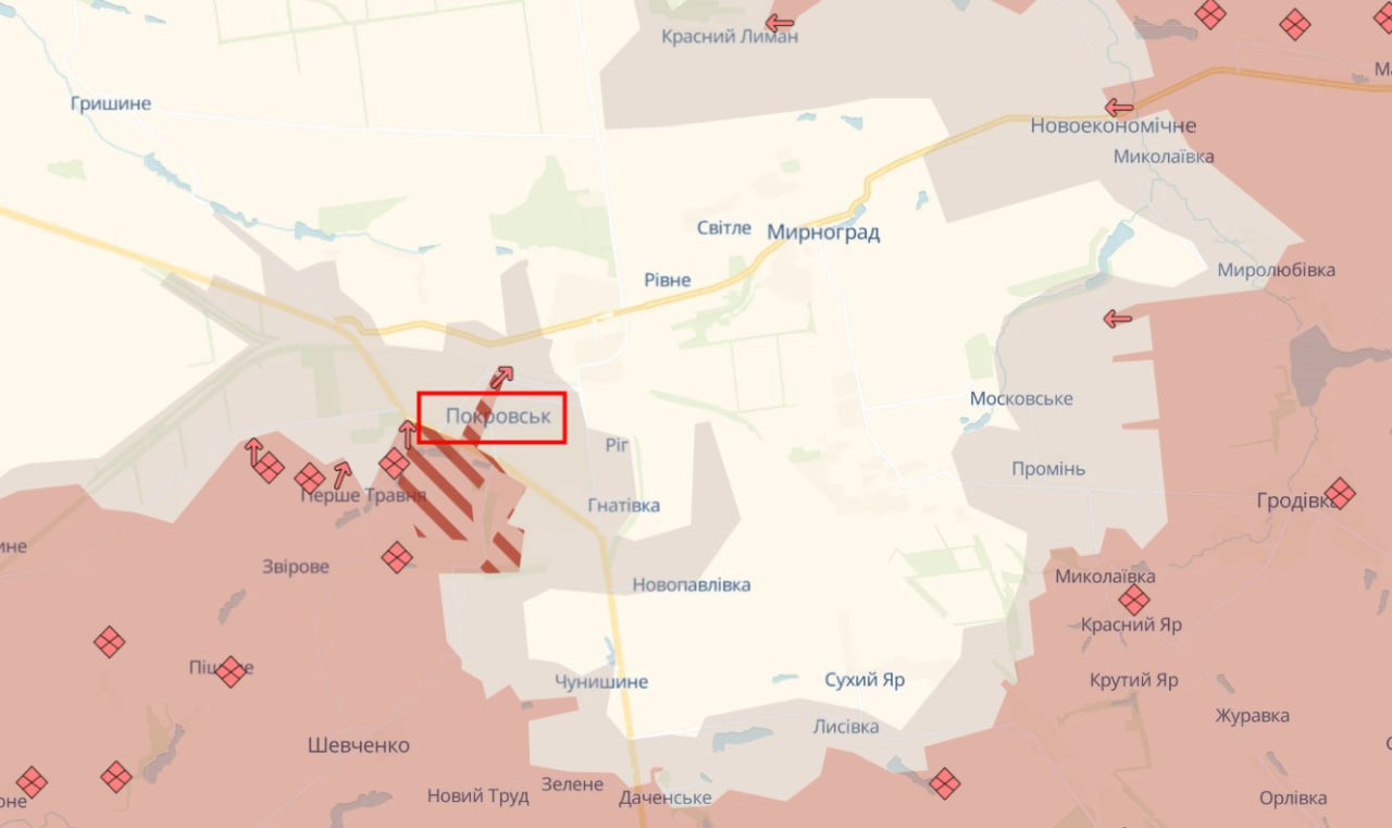 According to the Ukrainian open-source intelligence group DeepState, Russian forces made significant advances in the strategically vital city of Pokrovsk yesterday, intensifying their assault amid ongoing heavy fighting in Donetsk Oblast. The occupiers are exerting relentless pressure within the urban area, deploying specialized subunits trained for assaults in densely built-up environments, which has complicated the defense efforts and left the situation on this sector precarious and fluid.