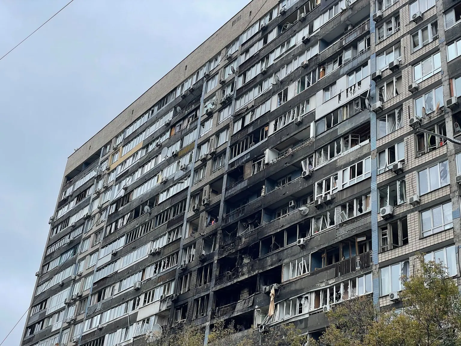 In Kyiv, at least 12 people were injured, with eight hospitalized. Strikes on critical infrastructure left the east bank of the city without electricity and disrupted water supplies and public transport. “From the explosions that just occurred — a ballistic missile attack is ongoing. Missiles, one after another, air defense is active,” said Tymur Tkachenko, head of the Kyiv City Military Administration. Residential buildings were damaged in the Holosiivskyi and Pecherskyi districts, while debris from a downed missile fell near a medical clinic in Desnianskyi district.
