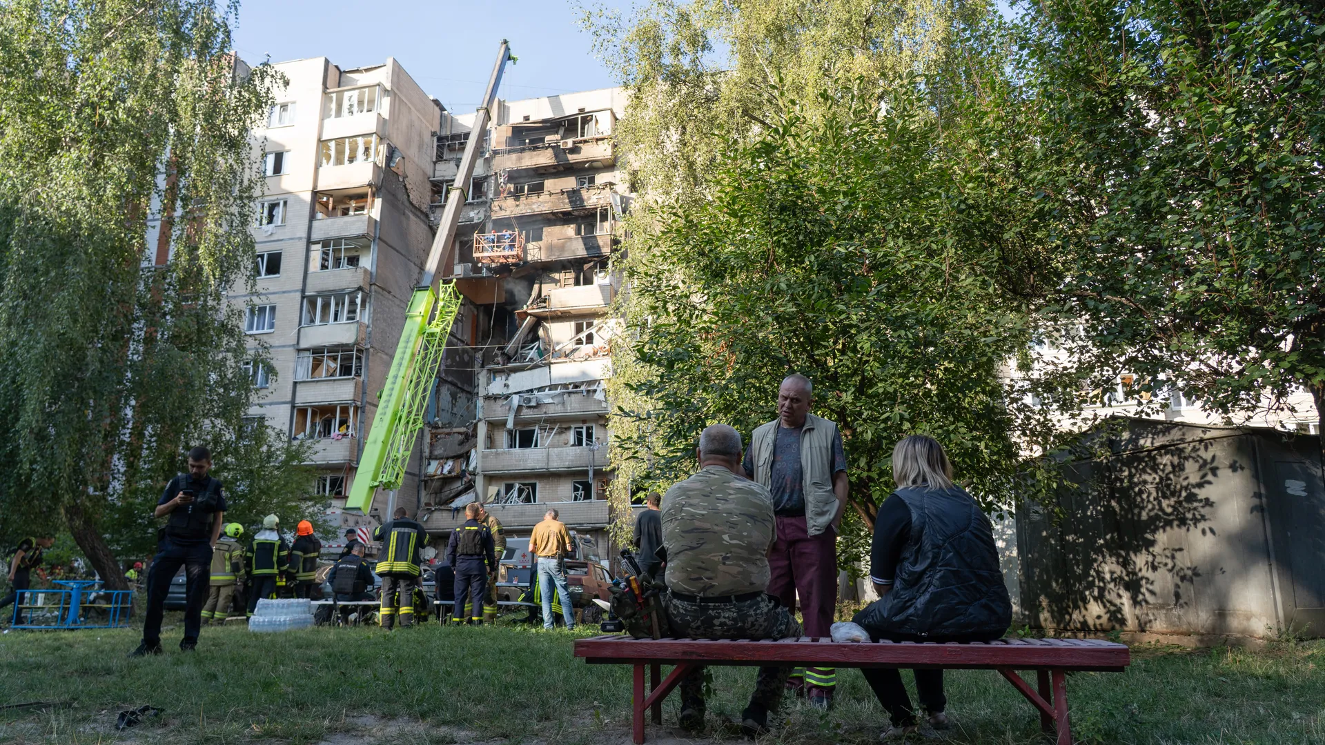 In Kryvyi Rih, missiles and drones struck around 10 apartment buildings, homes, a school, and local businesses, leaving at least three people hospitalized, according to local officials.